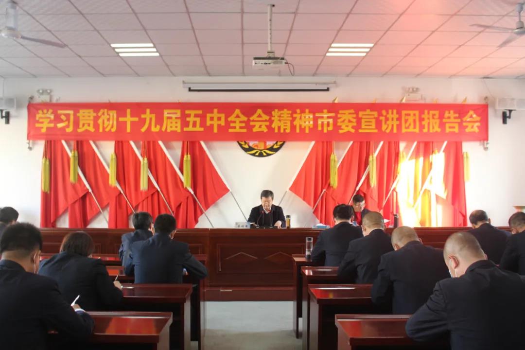 12月4日,學習貫徹十九屆五中全會市委宣講團報告會在山西大正保安服務有限公司進行。市委宣講團成員、市工信局(國資委)黨委書記、局長吳瑞峰作宣講報告。公司黨委書記、董事長張躍生主持報告會。黨委副書記、總經(jīng)理趙培宏等在家領(lǐng)導班子成員及中層副職以上干部50余人參加。吳瑞峰同志從深刻認識我國進入新發(fā)展階段的重大意義、有利條件和重要特征以及準確把握2035年遠景目標和“十四五”時期我國發(fā)展的指導方針、主要目標、重點任務等五個方面內(nèi)容,結(jié)合當前形勢及國資國企改革發(fā)展實際,對黨的十九屆五中全會精神進行了深入淺出、全面細致的宣講。