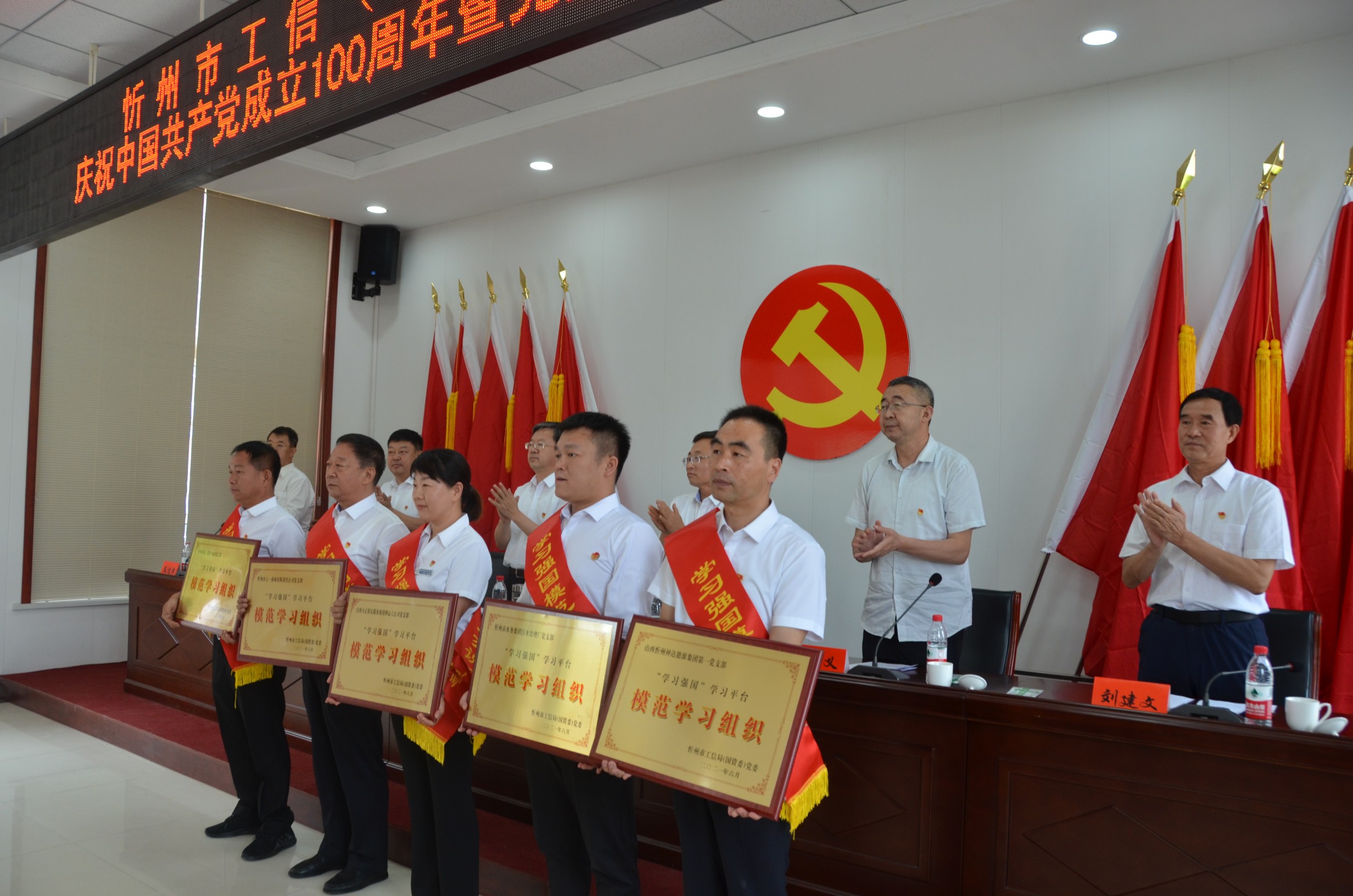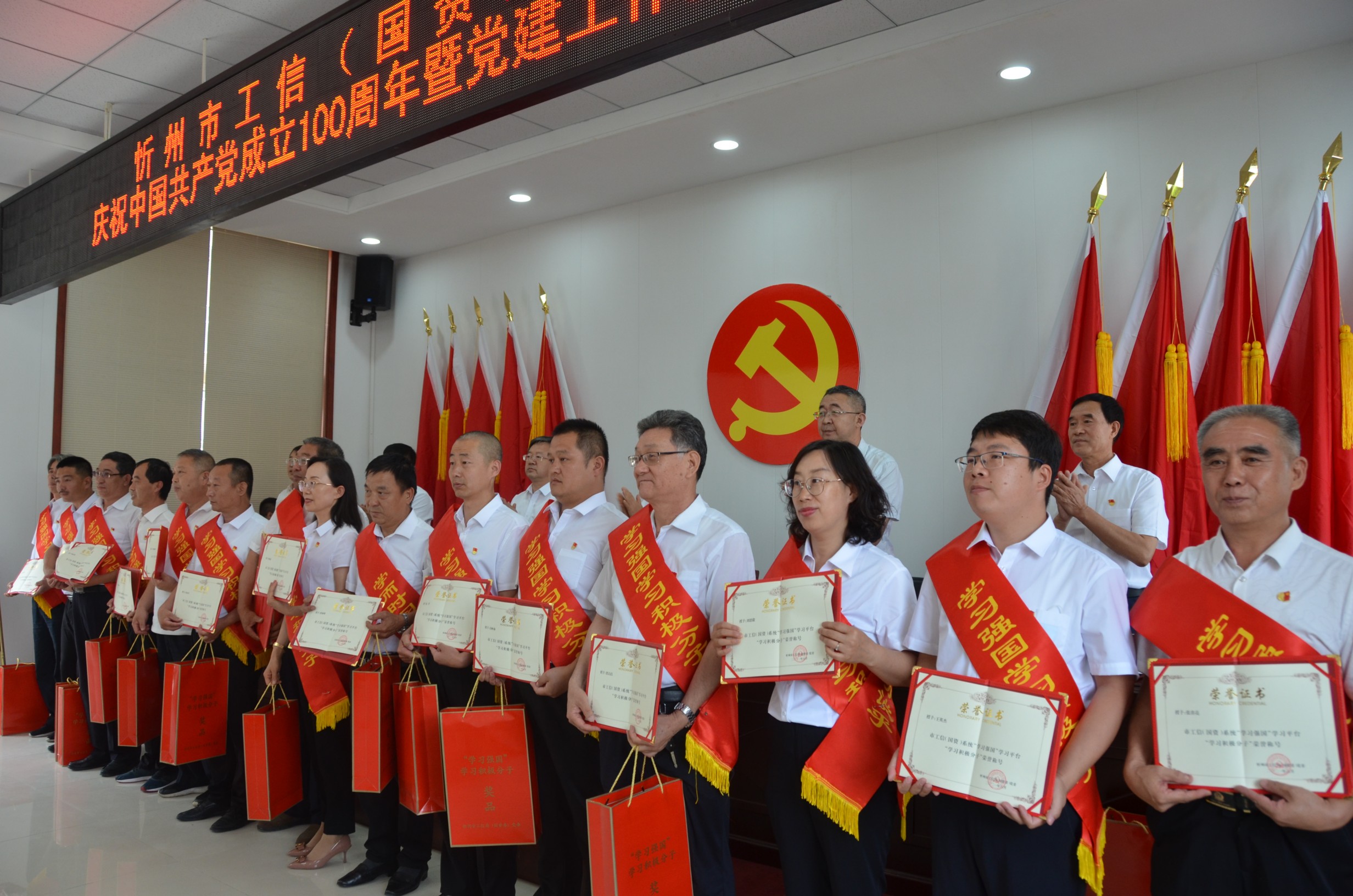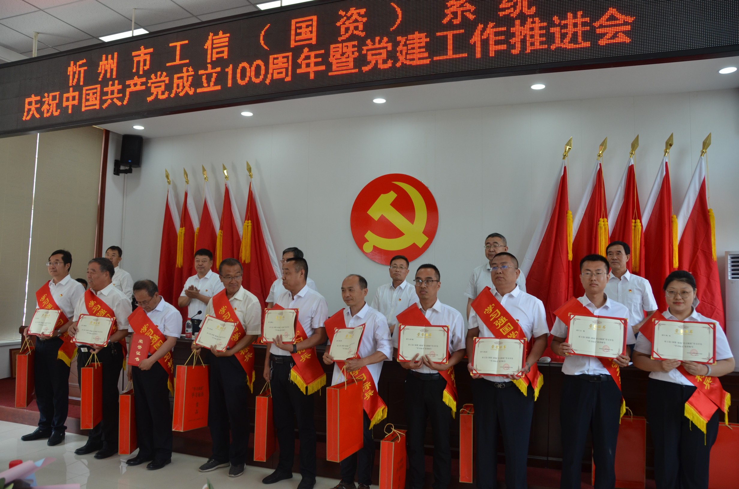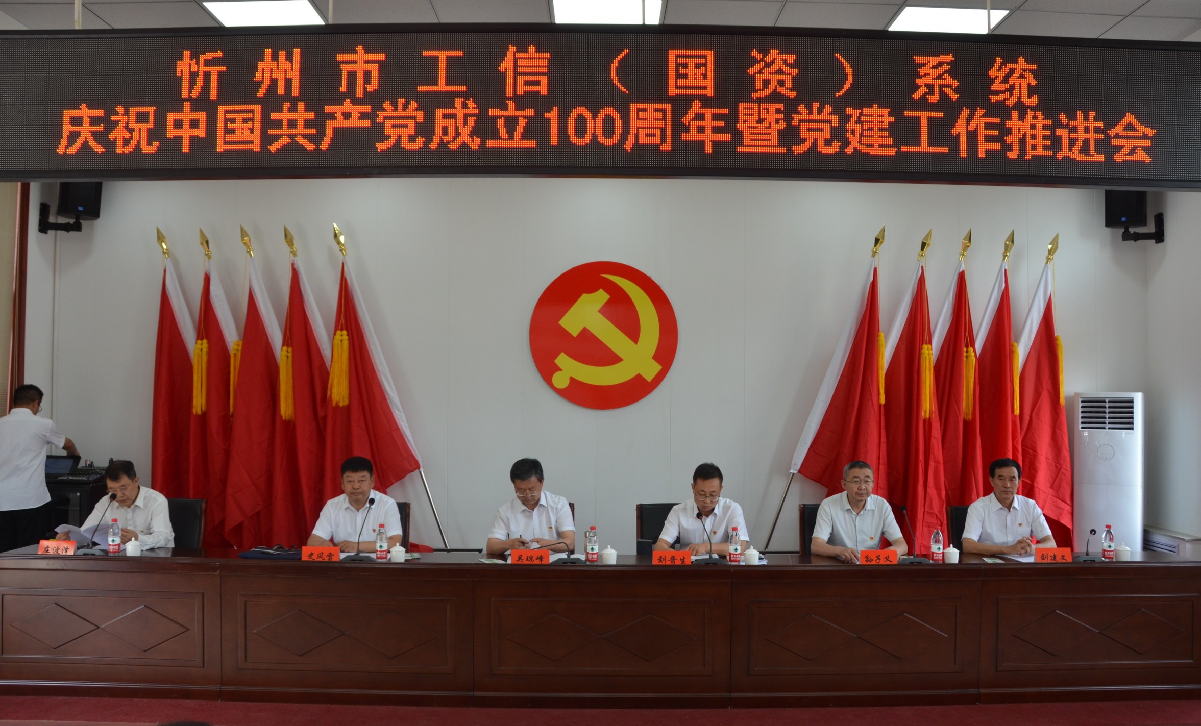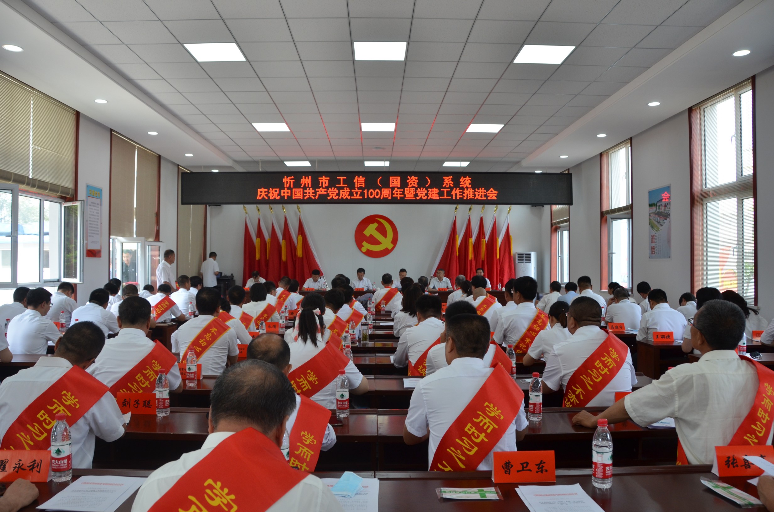 6月29日上午,忻州市工信(國資)系統(tǒng)召開慶祝中國共產(chǎn)黨成立100周年暨黨建工作推進(jìn)會(huì)在山西大正保安服務(wù)集團(tuán)有限公司總部會(huì)議室召開。忻州市工業(yè)和信息化局黨委書記、局長吳瑞峰等班子成員出席會(huì)議,各監(jiān)管企業(yè)黨委書記、市工信局全體黨員、新黨員代表、獲獎(jiǎng)人員參會(huì)。會(huì)議由局黨委專職副書記劉晉生主持。大正保安集團(tuán)公司黨委副書記趙培宏、陳志平等黨員代表參會(huì)。