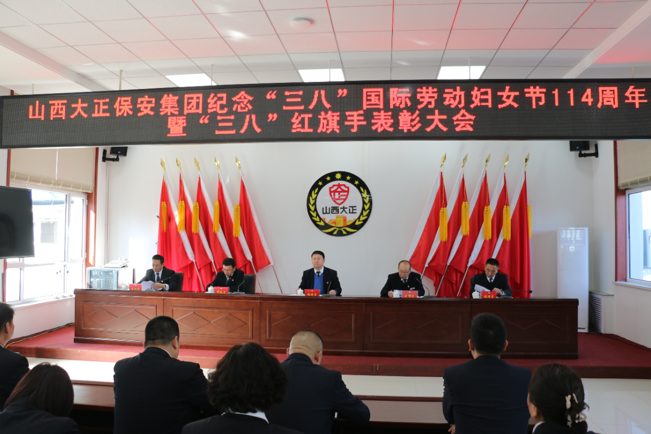 2024年3月8日上午,山西大正保安服務(wù)集團(tuán)有限公司召開紀(jì)念“三八”國際勞動婦女節(jié)114周年暨“三八”紅旗手表彰大會,集團(tuán)公司領(lǐng)導(dǎo)、“三八”紅旗手代表和機(jī)關(guān)、城區(qū)部分女員工共計80余人參會。會議由集團(tuán)公司黨委委員、副總經(jīng)理王明生主持。