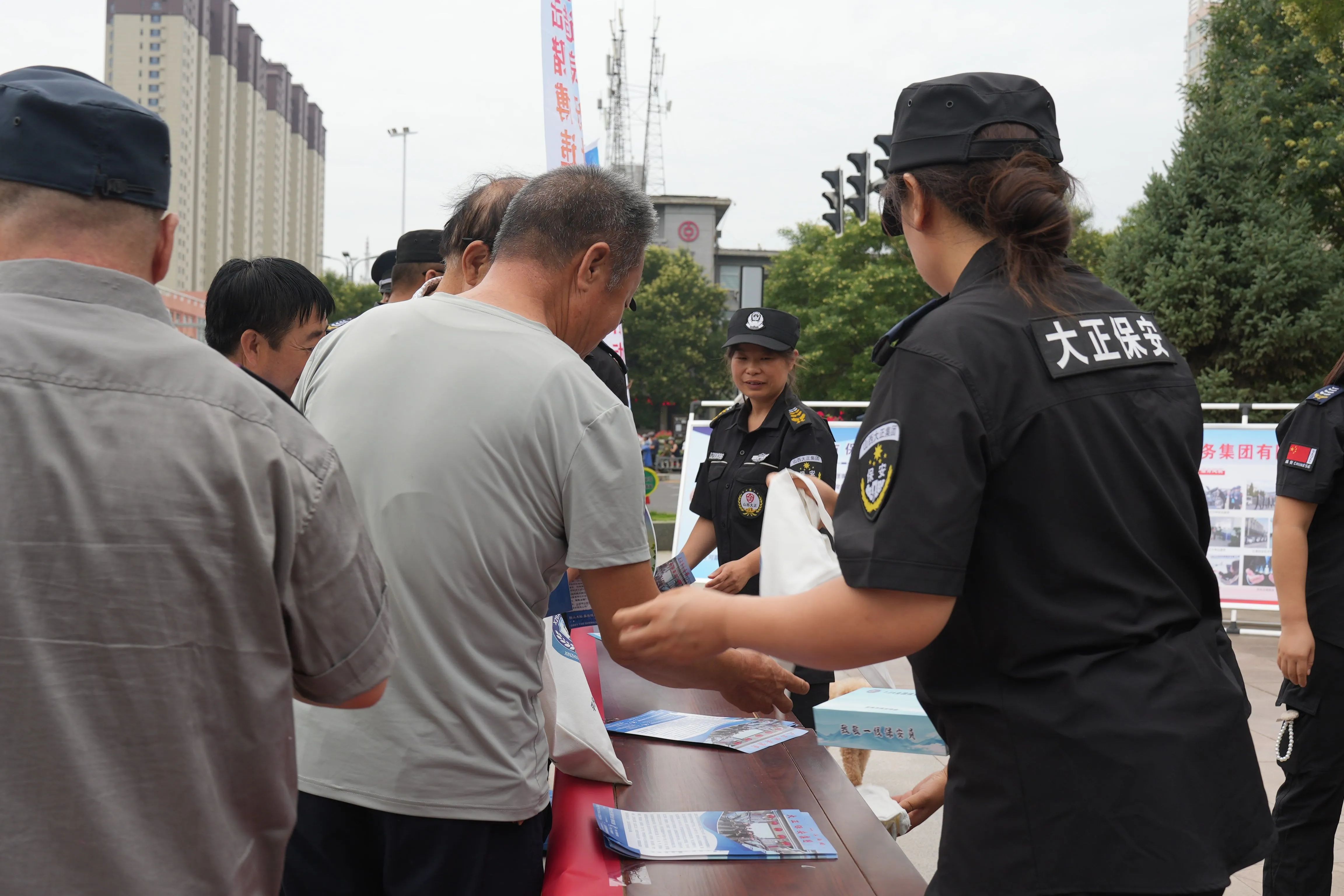 與此同時,山西大正保安服務集團有限公司也積極投身到宣傳活動中來。精心制作了12塊宣傳展板,內容涵蓋保安行業(yè)的職責使命、服務范圍、優(yōu)秀事跡等方面,生動展示了保安隊伍的風采和貢獻。保安隊員們更是主動與市民互動,通過現場講解、模擬演示等方式,讓市民更加直觀地了解保安工作的重要性和必要性。