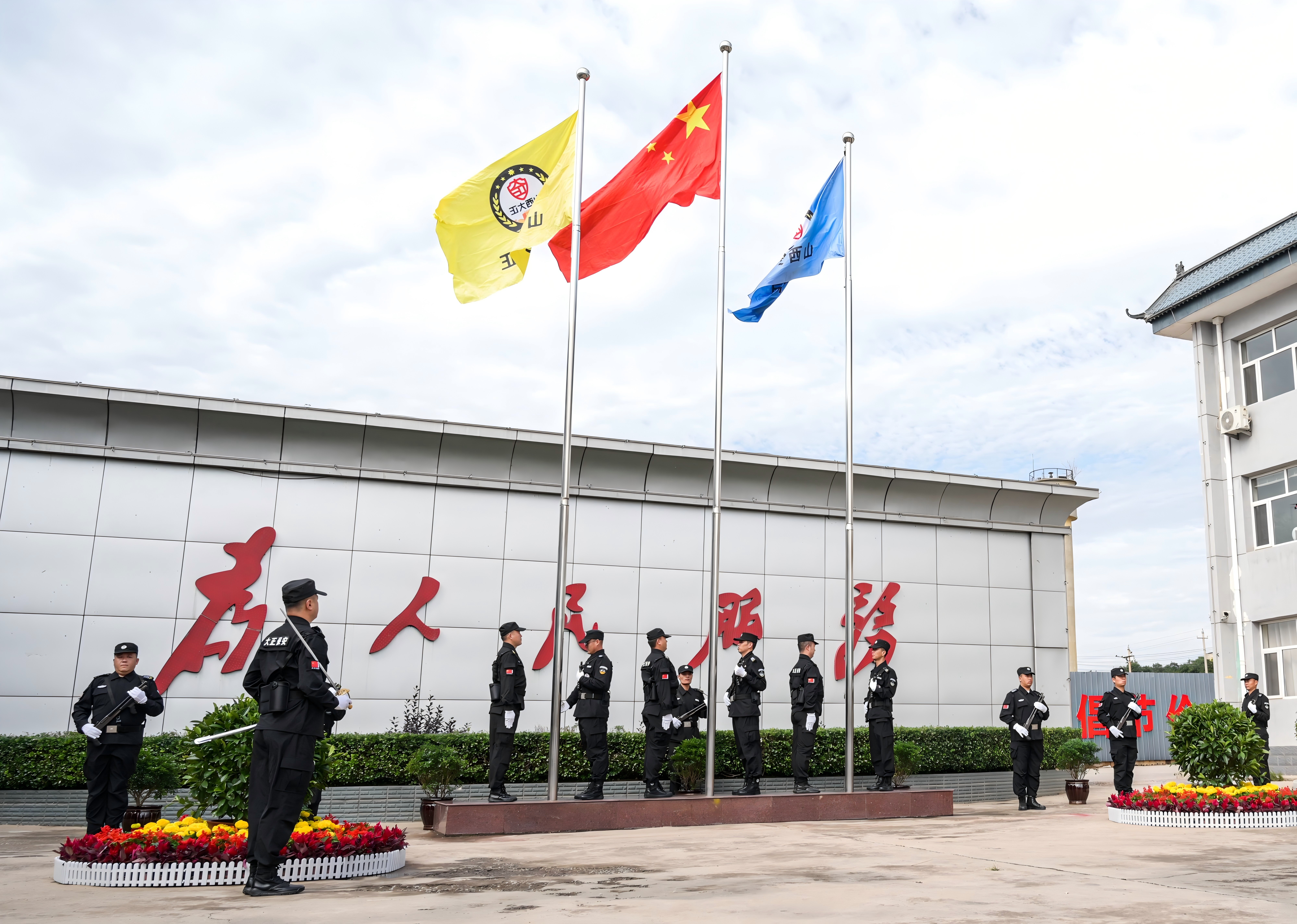 節(jié)日的公司院內(nèi)外,四周花團錦簇,大門口燈籠高掛、彩旗飄揚,為節(jié)日增添了濃厚的喜慶氛圍。公司運鈔車、巡邏車、運兵車干凈整潔,排列在場地兩側,升旗儀式更顯隆重。9時30分,集團公司、各子公司領導和機關各部門、城區(qū)員工共300多人整齊列隊,懷著激動的心情,手持小國旗,臉上貼著愛國貼紙、洋溢幸福的笑容,眼神中充滿了對祖國的熱愛和對升旗儀式的期待。