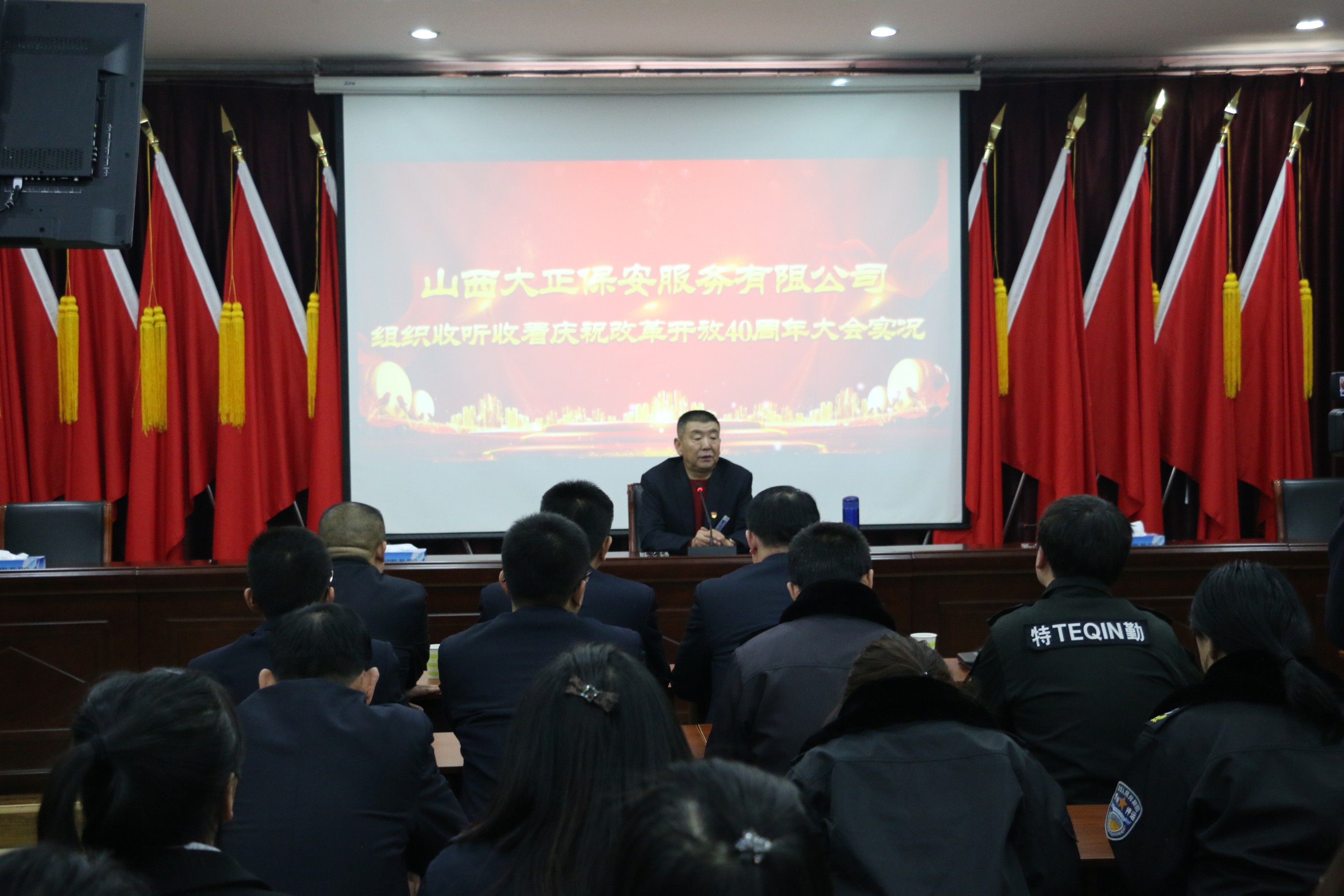 12月18日,山西大正保安服務(wù)有限公司組織公司全體黨員干部職工收聽(tīng)收看慶祝改革開(kāi)放40周年大會(huì)實(shí)況直播。