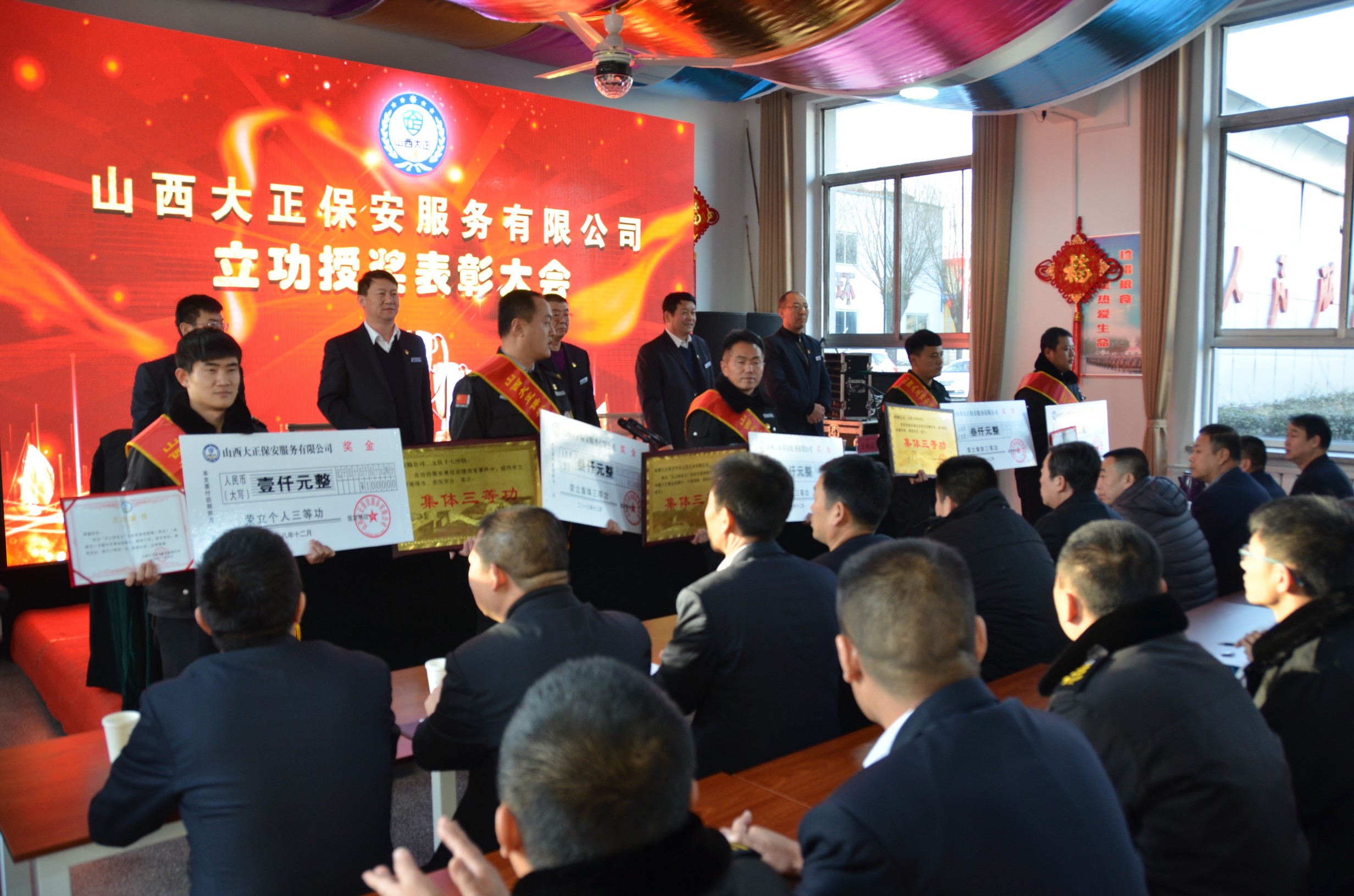 會上,黨委委員、副總經(jīng)理趙培宏宣讀《山西大正保安服務(wù)有限公司關(guān)于為2018年度先進集體、個人記功的決定》。與會領(lǐng)導(dǎo)為榮立三等功的先進集體牽手平安文化藝術(shù)有限公司、忻州保安服務(wù)公司特勤公司二支隊十七中隊、忻州保安服務(wù)公司特勤公司二支隊十四中隊和榮立三等功的先進個人李振瑋、韓鑫進行頒獎。特勤公司二支隊副支隊長李濤作為立功代表進行表態(tài)發(fā)言。