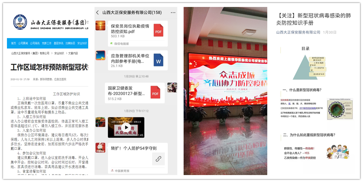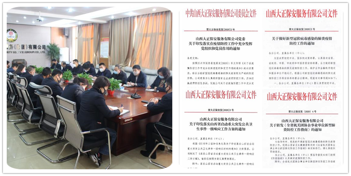 新型冠狀病毒肺炎疫情爆發(fā)以來,山西大正保安服務有限公司堅決貫徹黨中央、國務院決策部署,深入貫徹省委、省政府,市委、市政府和市國資委安排部署,認真落實“堅定信心、同舟共濟、科學防治、精準施策”的總要求,根據(jù)企業(yè)實際情況周密安排部署,多措并舉扎實推進企業(yè)疫情防控工作。
