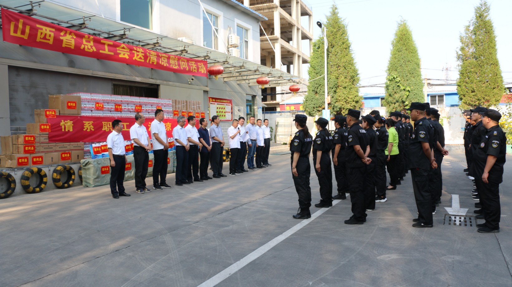 7月27日下午,省、市兩級(jí)總工會(huì)領(lǐng)導(dǎo)蒞臨我公司舉行“夏季送清涼”慰問(wèn)活動(dòng),為堅(jiān)守在一線(xiàn)的職工朋友們送上夏日的關(guān)懷與問(wèn)候,同時(shí)為職工朋友們贈(zèng)送一批防暑用品和對(duì)公司困難職工進(jìn)行慰問(wèn)。省總工會(huì)黨組成員、副主席張亞琳;省總工會(huì)經(jīng)濟(jì)技術(shù)部副部長(zhǎng)高偉;市人大副主任、市總工會(huì)主席魏廣才;市總組黨組書(shū)記、常務(wù)副主席王書(shū)鴻;市總工會(huì)副主席曲文斌;市總工會(huì)副主席左文蕾;公司黨政班子成員參加此次活動(dòng)。活動(dòng)由山西大正保安服務(wù)有限公司黨委書(shū)記、董事長(zhǎng)張躍生主持。