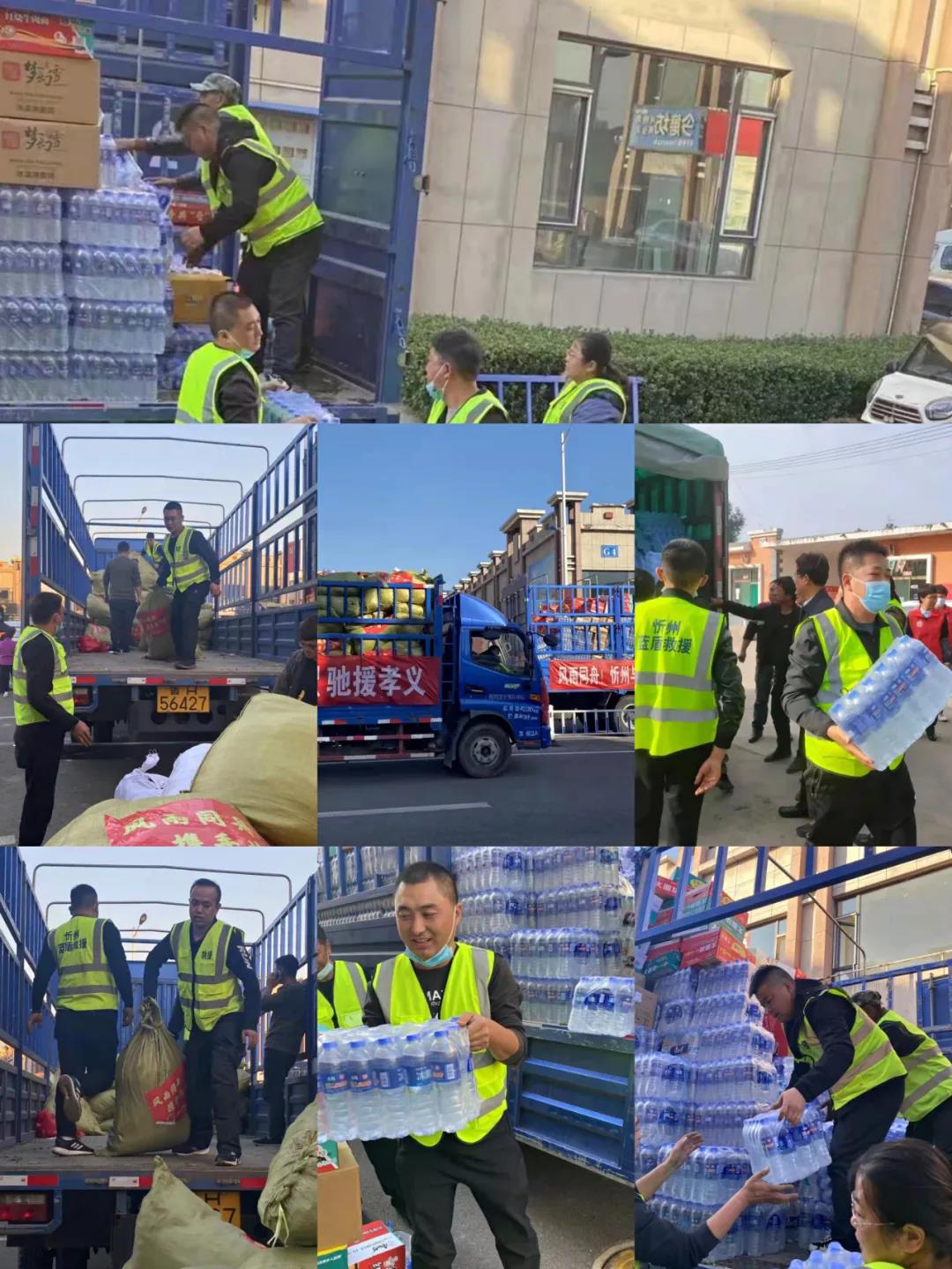 10月16日,山西大正保安服務(wù)集團(tuán)有限公司出動(dòng)大型貨車(chē)兩輛,攜手忻州藍(lán)盾應(yīng)急救援隊(duì)(籌)及社會(huì)各界愛(ài)心人士,裝載著籌集的消毒水40桶、消毒液15箱、方便面320箱、脆筒5箱、礦泉水600件、沙袋4000個(gè)、面包35箱、口罩15500個(gè)和由忻州實(shí)驗(yàn)小學(xué)等籌集的衣物9000余件等物資,驅(qū)車(chē)奔赴孝義市災(zāi)區(qū)。