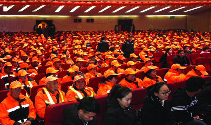 忻州市保安押運(yùn)護(hù)衛(wèi)中心、保安服務(wù)公司總經(jīng)理張躍生、黨委書記陳志平,忻州市環(huán)衛(wèi)處處長石建新和現(xiàn)場(chǎng)500余名環(huán)衛(wèi)工人代表共同觀看了演出。