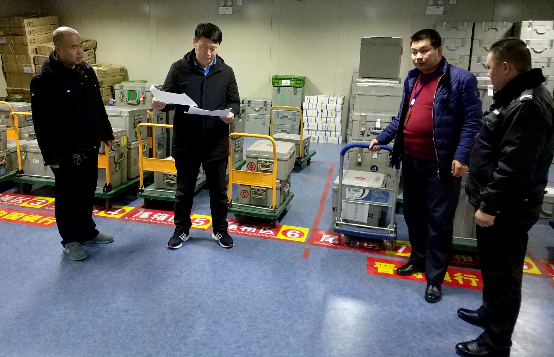 2017年12月31日晚,在副總經(jīng)理趙培宏帶領(lǐng)下,總經(jīng)理助理寇星云、勤務(wù)指揮中心楊貴文、保衛(wèi)部張龍以及一公司相關(guān)負責(zé)人對城區(qū)中心庫中隊進行了2017年年終尾箱庫清查工作。