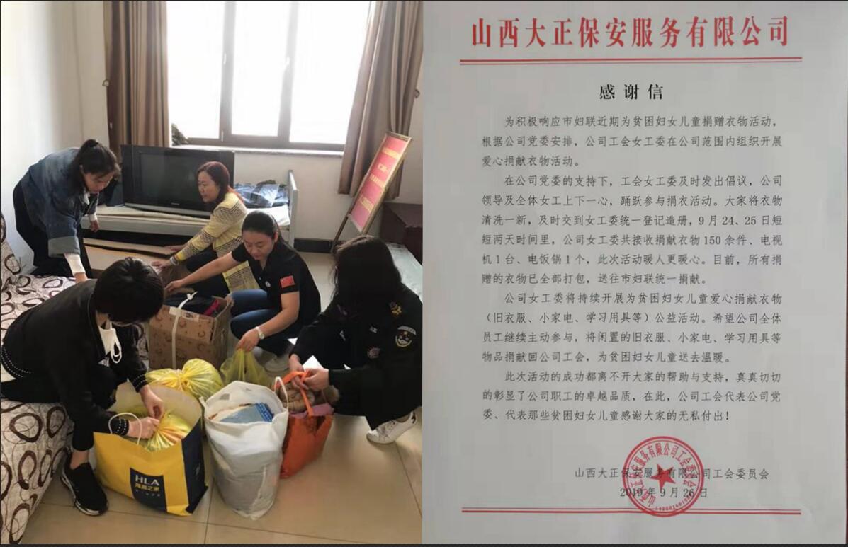 目前,在公司女工共同幫助下,所有捐贈的衣物已全部打包,送往市婦聯(lián)統(tǒng)一捐獻。