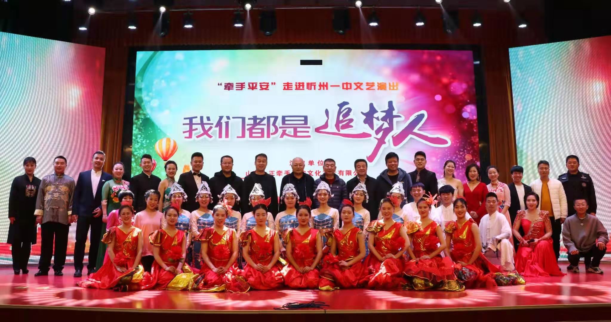 11月30日下午兩點半,雪后初霽,忻州市第一中學(xué)體育館大廳內(nèi)霓虹閃爍、鼓樂歡騰,“我們都是追夢人——山西大正‘牽手平安’走進(jìn)忻州一中文藝演出”在鼓舞《揚(yáng)帆新征程》中拉開了帷幕。