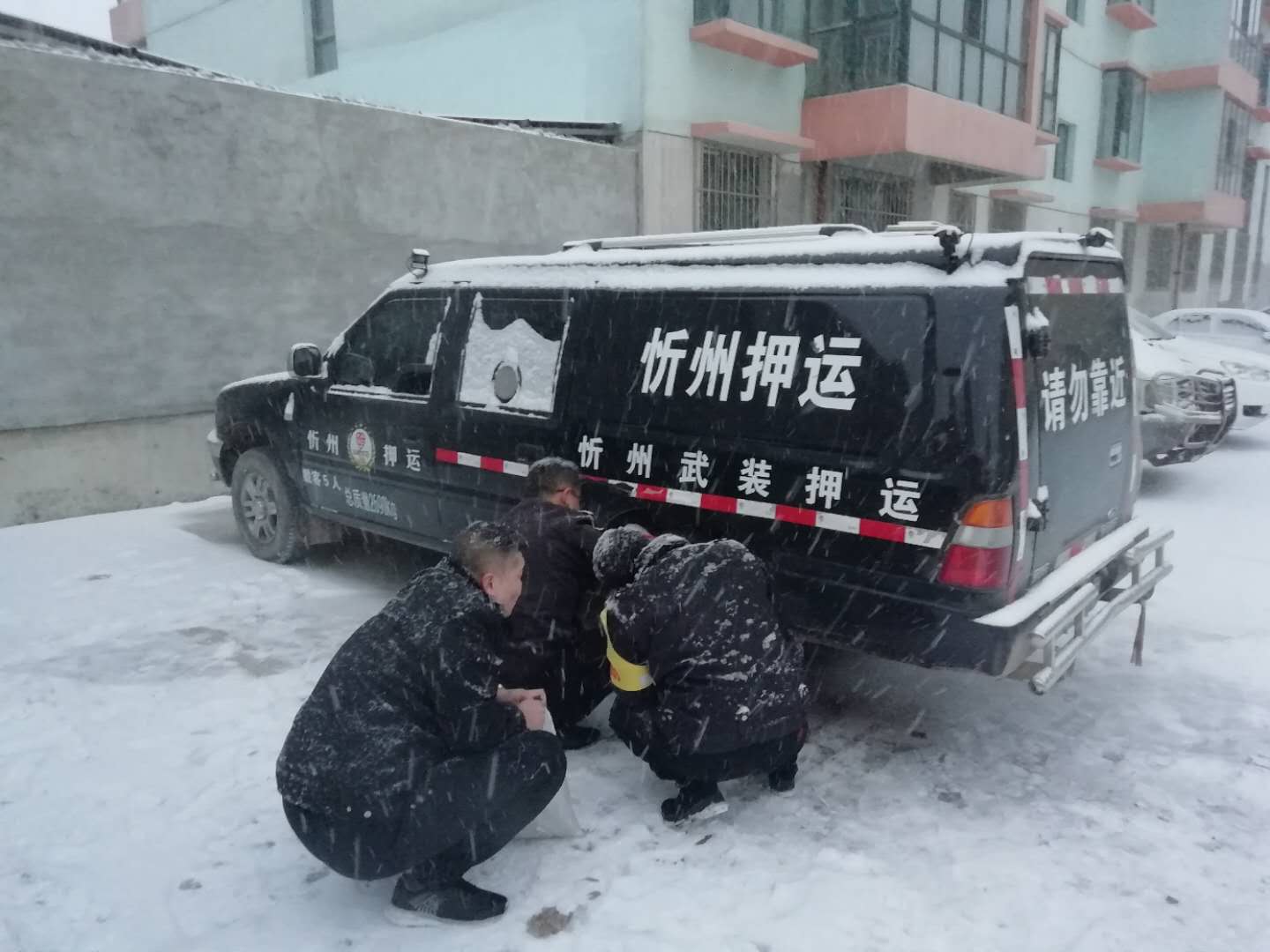 為預(yù)防押運(yùn)車輛發(fā)生交通安全事故,切實(shí)加強(qiáng)降雪天氣條件下行車安全管理工作,確保金融守護(hù)押運(yùn)工作穩(wěn)定,把公司安全工作落到實(shí)處,在開展押運(yùn)工作中,守押基層中隊根據(jù)總公司處理雨雪天惡劣天氣預(yù)案,做了全面的安全部署,合理安排車輛行車安全,注意檢查車輛安全性能、行車車載設(shè)備及安全帶、防彈頭盔、防彈衣,技術(shù)員隨時觀察并記錄每輛車的運(yùn)行路線以及周邊情況。車輛出發(fā)前,各車組采取添加防滑鏈,降低行駛速度等安全措施,把好安全關(guān)。中隊負(fù)責(zé)人和安全員分別跟車,在偏遠(yuǎn)山路地區(qū)與車組共同接受這場風(fēng)雪的考驗(yàn),給隊員們不怕遇到雨雪困難,有效的克服各種困難增加了堅定的信念,安全順利的完成運(yùn)營網(wǎng)點(diǎn)勤務(wù)任務(wù)。