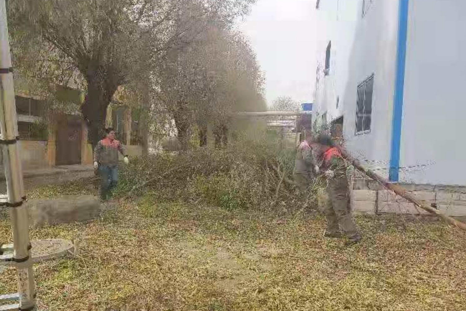 有的同志在樹上使用工具修剪樹枝,有的則在地面撿拾枝葉,還有的用掃把清掃環(huán)境衛(wèi)生,全體參與人員分工協(xié)作,經過連續(xù)兩天的緊張工作,院內的樹枝全部修剪完畢,辛勤的勞動換來了衛(wèi)生的整潔,保持了集團總部辦公新址院內的環(huán)境美觀。